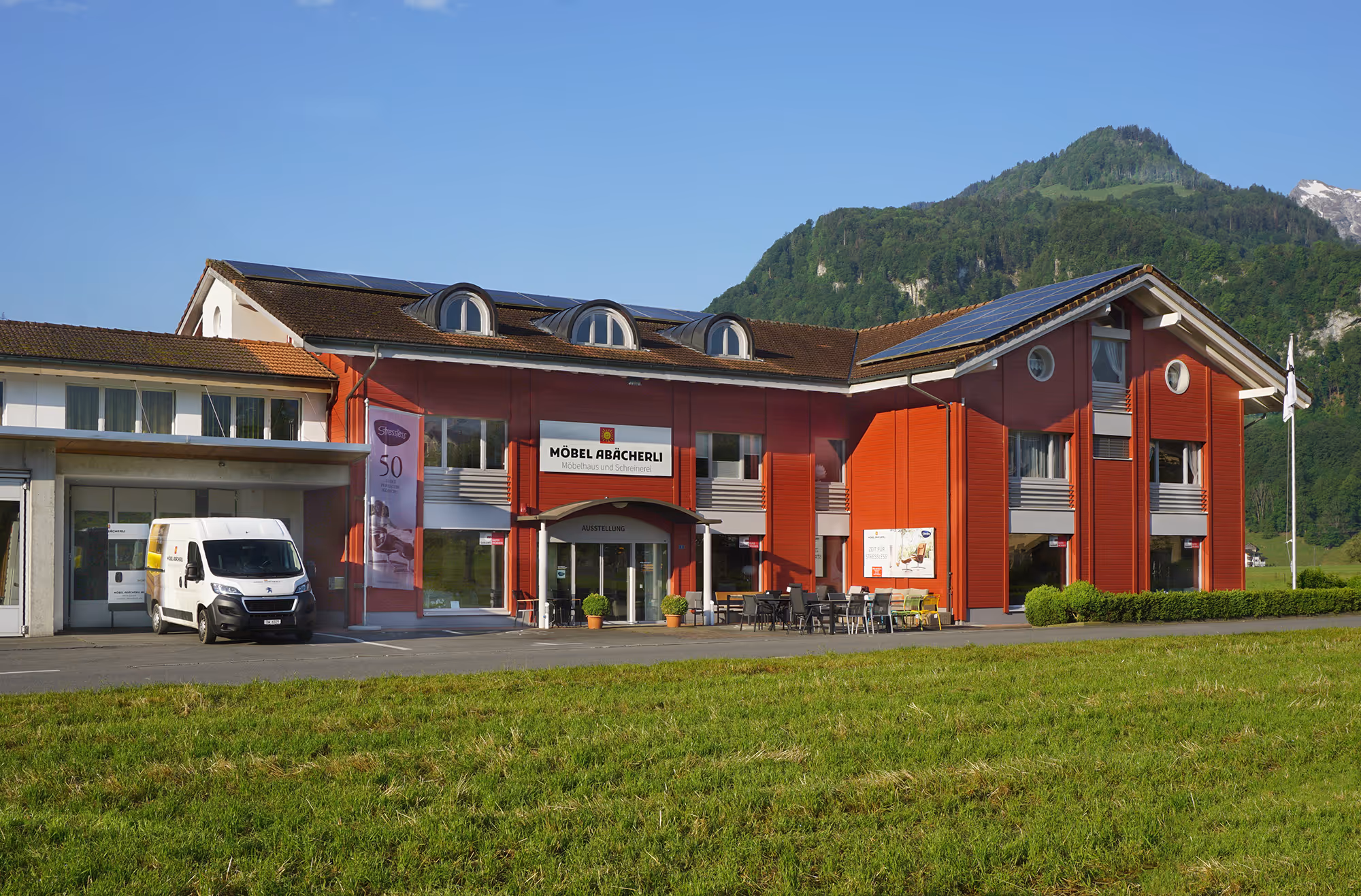 In der grossen Ausstellung von Möbel Abächerli werden Träume wahr, vom Stressless-Sessel oder Brühl-Sofa über TV-Möbel und Bürostuhl bis zu Esszimmer-Stühlen und Kleiderschrank. Seit 1960 überzeugt das Obwaldner Familienunternehmen mit sympathischer Beratung, bester Qualität, absoluter Flexibilität und heimischem Handwerk. Richten Sie sich sonnig ein – wir freuen uns, Sie zum Strahlen zu bringen.