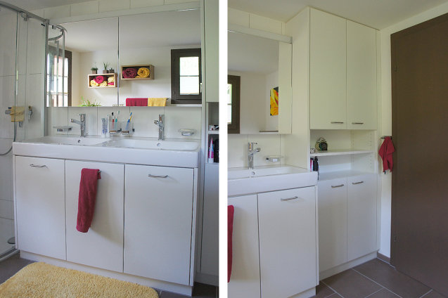 Ob klein, ob gross, ob schlicht, ob bunt - wir gestalten mit Ihnen Ihr neues Badezimmer nach Wunsch und produzieren es gerne in unserer eigenen Schreinerei. Mit der CAD-Planung sehen Sie schon vorher, wie es nachher aussieht.