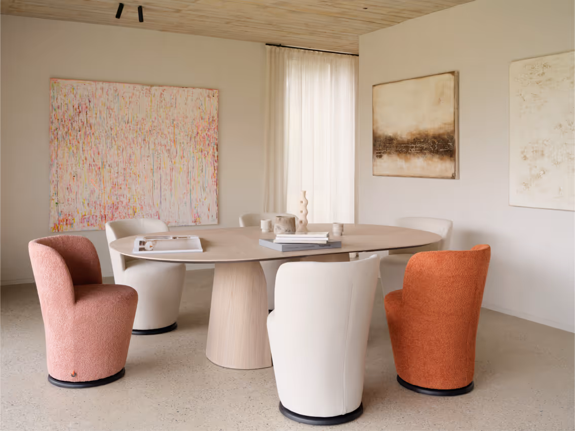 Wählen Sie aus drei verschiedenen Varianten von Untergestellen: auf einem drehbaren Gestell, mit einer Metallbasis oder einer Holzbasis.