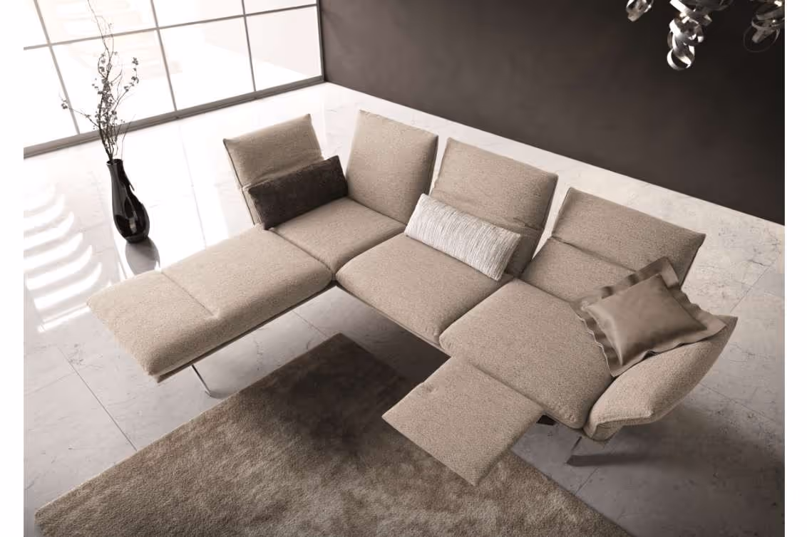Platz für die ganze Familie mit viel Funktion und Beweglichkeit. Die schwenkbare Sitzfläche wird zur Liegefläche. Und mit dem Funktionsarmteil, Kopf- und Rückenverstellung machen Sie es sich gemütlich zu Hause.