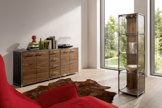 Das vielseitige und grenzenlose Regalsystem fürs Büro und Wohnen. Wählen Sie aus verschiedenen Materialien und Kombinationsmöglichkeiten Ihr individuelles Möbel. Das modulare Trägersystem besteht aus präzisen und hochwertig verchromten Feinguss-Verbindungselementen. Die patentierte Verbindungstechnik gewährt Stabilität und zeichnet sich durch klare Konturen aus. Wir beraten Sie gerne.