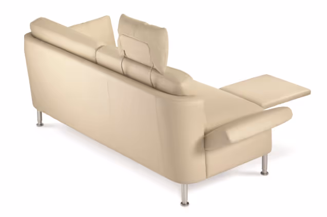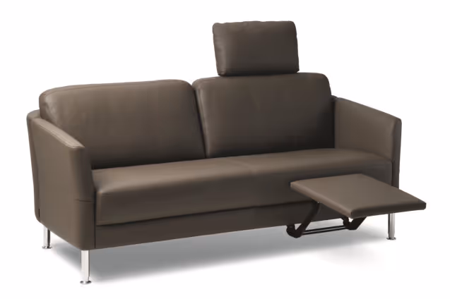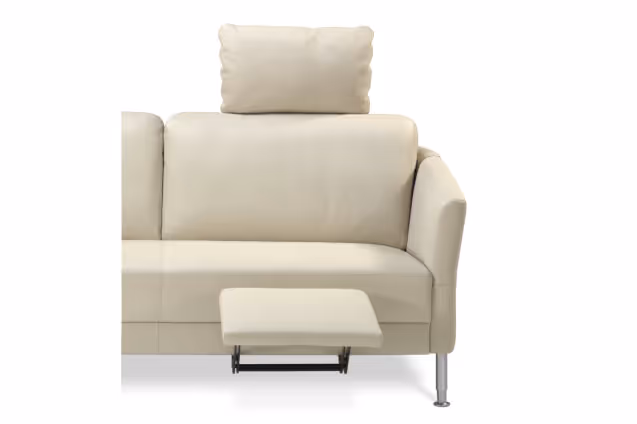 NIMBUS ist geschaffen für Geniesser - die Fussstütze ist unsichtbar unter dem Sofa verstaut und wird bei Bedarf ausgezogen. Mit einem Handgriff wird der Kopfstützenbügel hinter dem Rückenkissen hochgeklappt und das Armteilkissen aufgesteckt. Das Modell Nimbus ist in vier Grössen erhältlich und mit ausziehbarer Fussstütze sowie höhenverstellbaren Füssen in Metall oder mit Holzfüssen ausgerüstet.