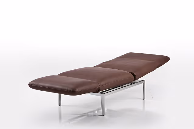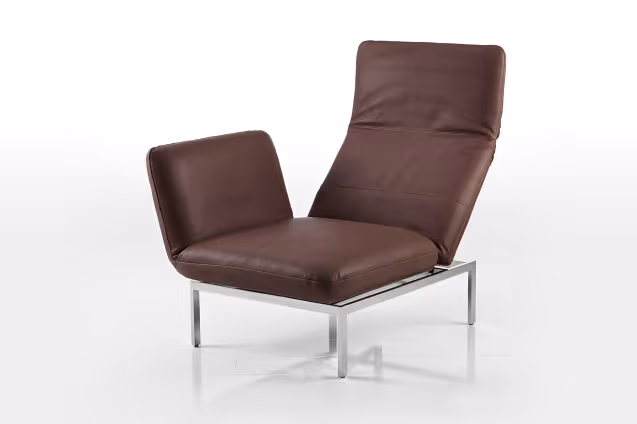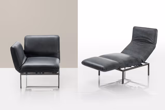 Der Einzelsessel roro-medium oder roro-small lässt sich mit wenigen Handgriffen individuell zum Sitzen, Entspannen oder Liegen einstellen. Er basiert auf der Idee um 90 Grad drehbarer Sitze sowie aufstellbarer und stufenlos absenkbarer Rückenlehnen und kann sich so zur Lounge-Liege oder – vollständig abgesenkt – zur Schlaffläche wandeln. roro ist mit abziehbaren Bezügen in Textil oder Leder ausgestattet.