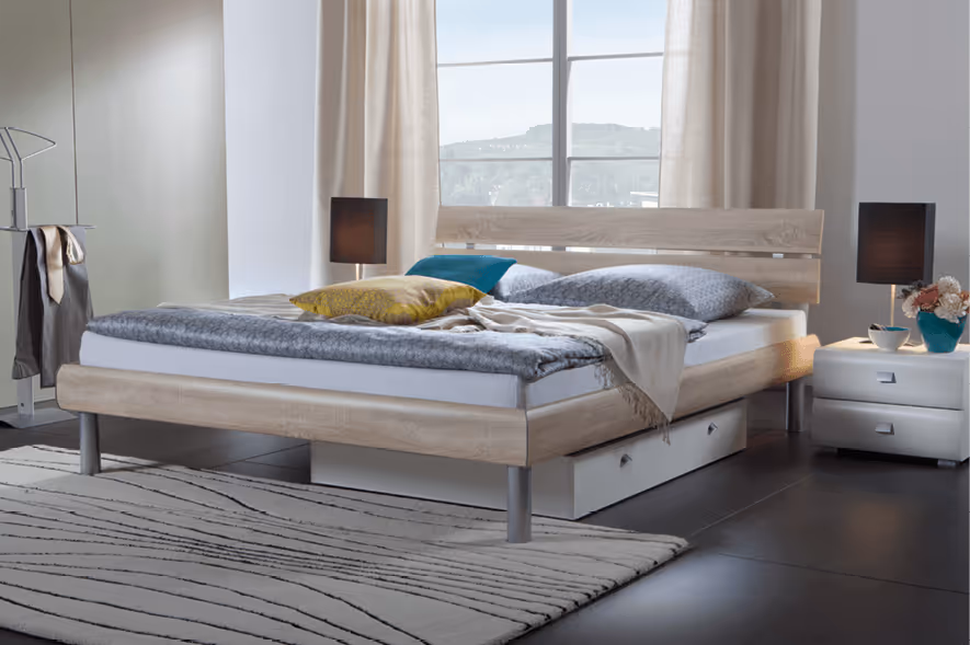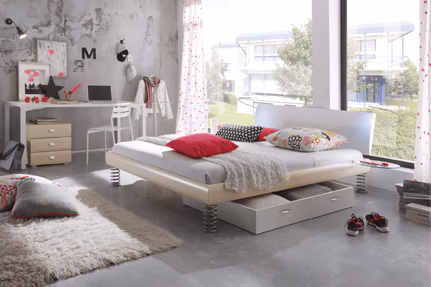 Beim Softline Bettenprogramm können Sie ihr individuelles Bett zusammenstellen. Wählen Sie die Rahmenfarbe, den für Sie passenden Fuss sowie das Kopfteil. Passend dazu gibt es jeweils auch Nachttische, Kommoden, etc.