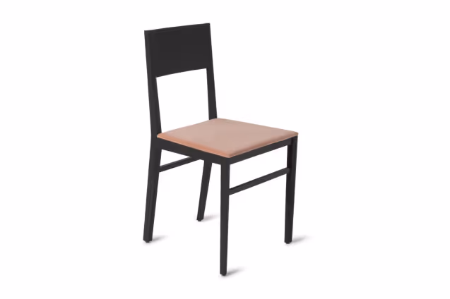 Der Stuhl in Massivholz ist sehr filigran, elegant und extrem leicht (2.800 kg).Erhältlich in Nussbaum, Eiche und Esche schwarz.