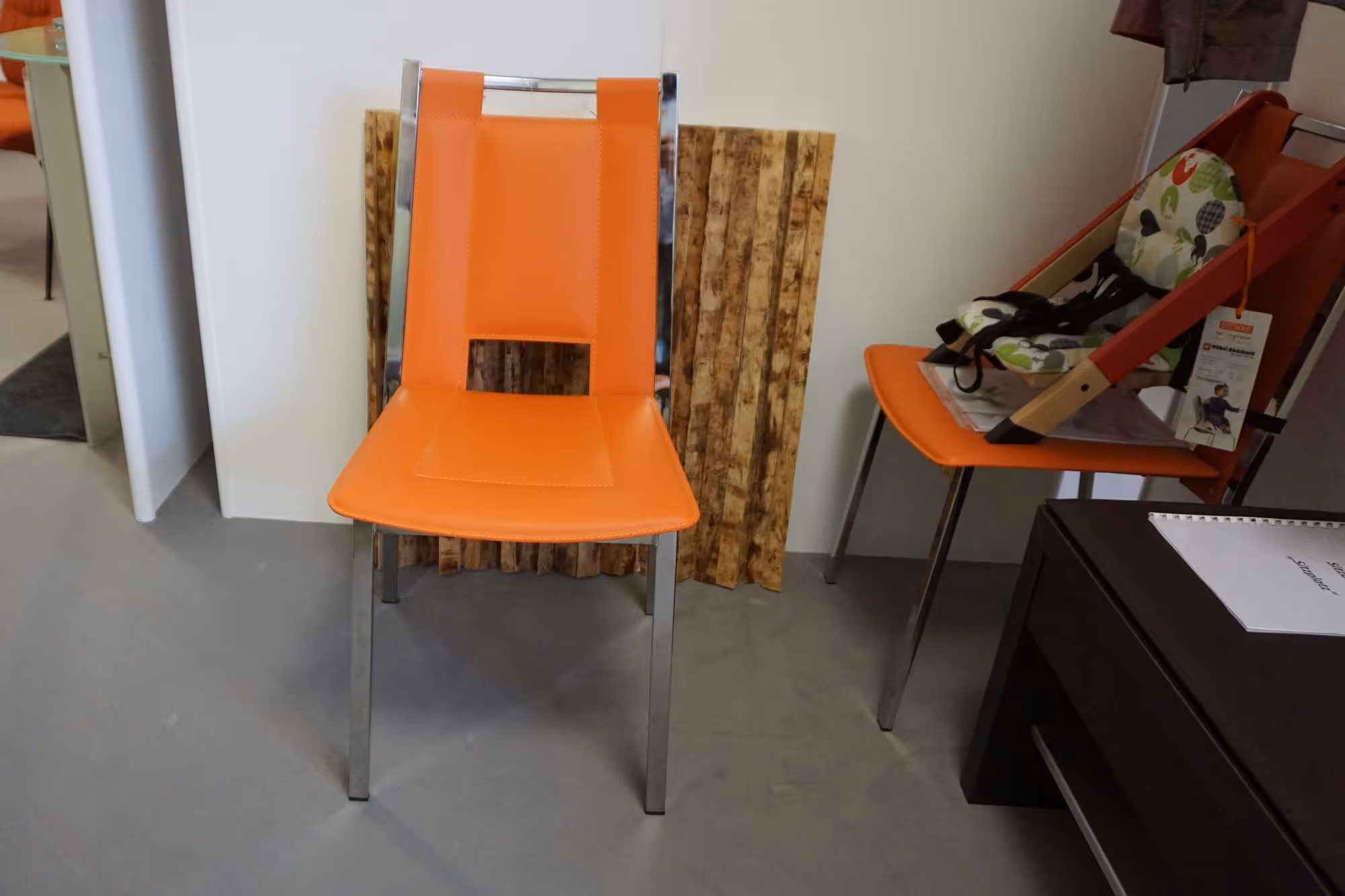 2 Stühle SE 160Lederfaserstoff orangeGestell Chrom