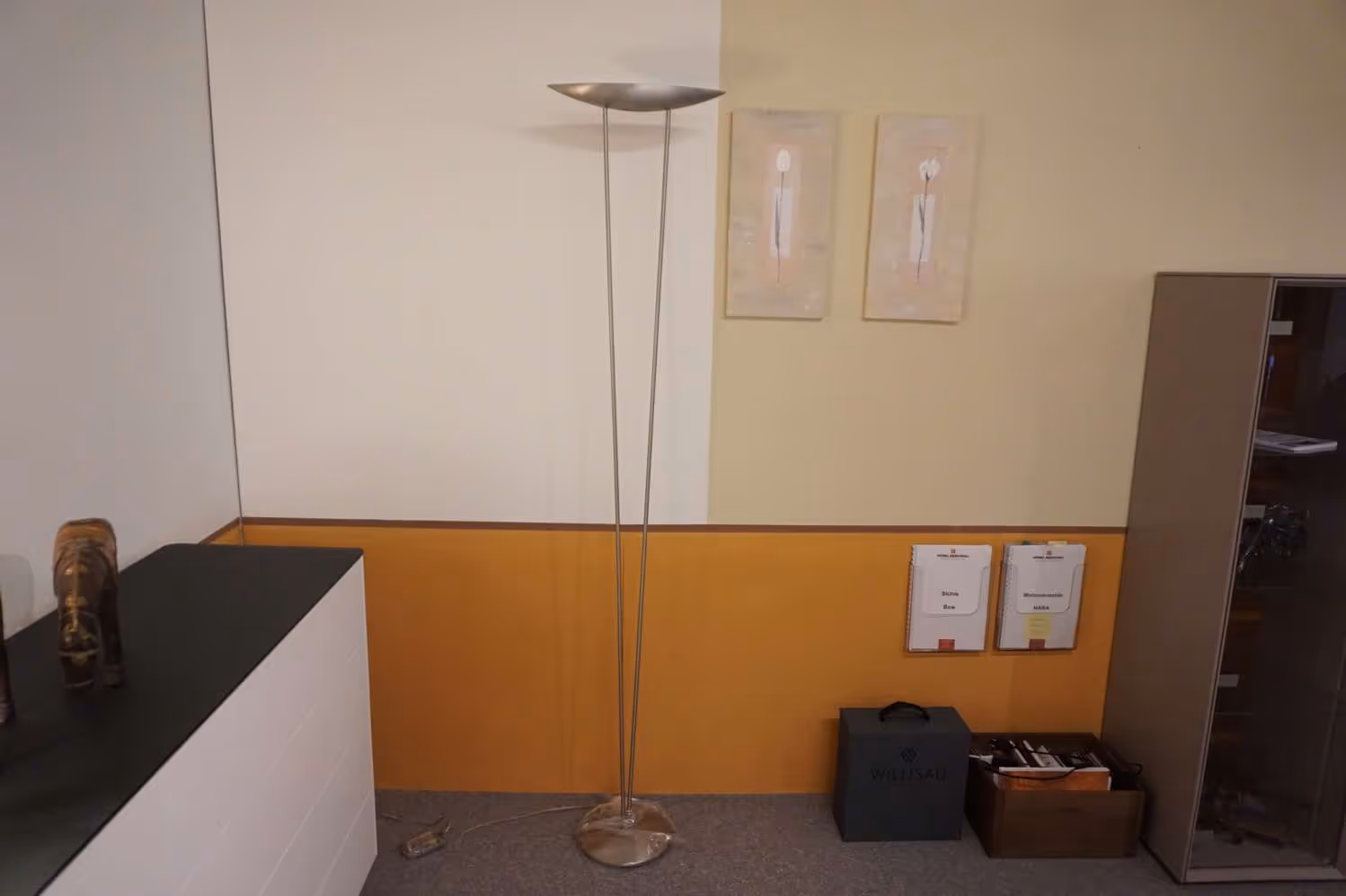 Stehleuchte KANO 5704 STMetallinklusive LeuchtmittelMasse: Höhe 187 cmLampen Schiff Länge 40 cmSockel Durchmesser 26 cmAusstellungs-Lampe netto: CHF 119.-
