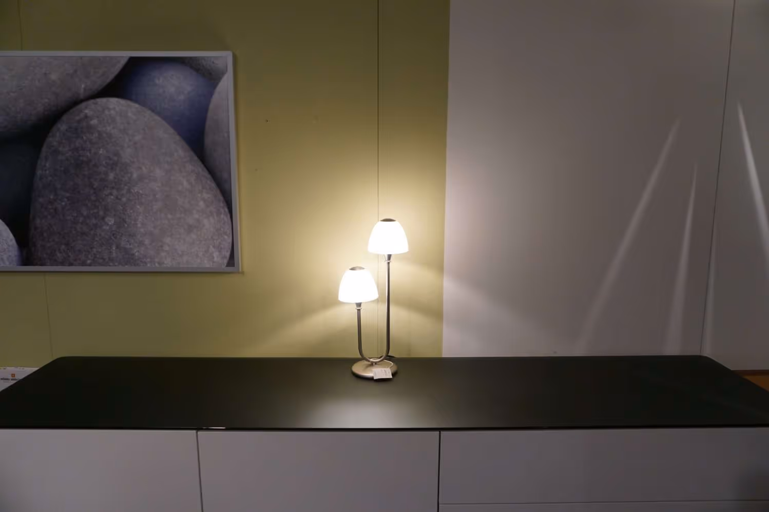 inklusive LeuchtmittelHöhe 47.5 cmNeigung des Arms verstellbar und Leuchtmittel verstellbarAusstellungs-Lampe netto: CHF 99.-Preise abgeholt